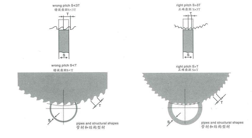 鋸齒選擇與正確的切割角度是您使用切管機(jī)鋸片出色完成工作的主要因素;選擇取決于切割材料及截面。以下例舉一些技術(shù)人員多年的經(jīng)驗(yàn)成果